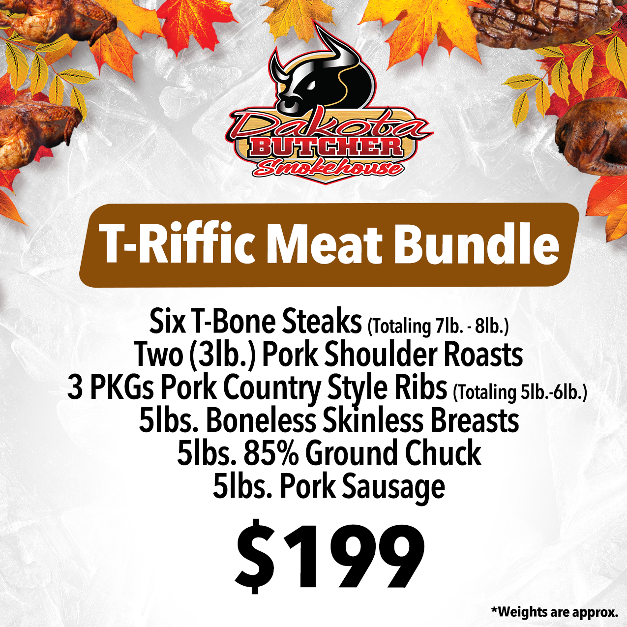 Save big when you stock your freezer with the T-Riffic Meat Bundle in store at all Dakota Butcher store locations while supplies last!